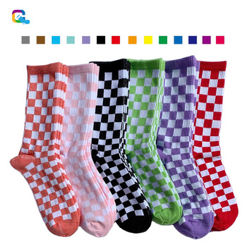 ओम किशुआन कस्टम लोगो महिला चेकरबोर्ड सड़क मध्यम ट्यूब कपास स्केटबोर्ड चालक दल खेल मोजे थोक
