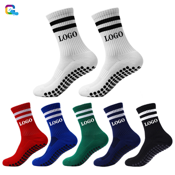 OEM Qichuan yüksek kalite özel Logo yetişkin futbol çorapları hiçbir adedi ayak bileği kavrama futbol Medias kaymaz anti-bakteriyel kaymaz spor